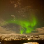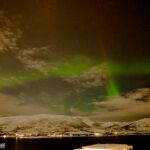 Jeden Abend haben wir dann auf Wolkenlücken gewartet, da von sternenklarem Himmel nicht die Rede sein kann. Und eines Abends war es dann soweit und wir konnten die Polarlichter direkt vom Balkon der Wohnung aus beobachten. Es sieht wundervoll aus, wenn sich die Lichter über den Himmel bewegen. Leider war durch den Mond und die Beleuchtung der Kontrast der lichter etwas eingeschränkt. Wir haben die Kamera aufgestellt und die Lichter fotografiert. Bei Belichtungen von 5 bis 10 s hat sich dann auch das typische grün der Lichter strahlend gezeigt. Es ist ein schönes Gefühl dieses Schauspiel beobachten zu können.