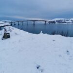 Um die Umgebung von Tromsö zu erkunden haben wir uns noch ein Mietwagen geliehen. Es war ein VW mit Allrad und Spikes in den Reifen. Es macht Spaß durch den Schnee und über das Eis zu fahren. Wir sind bis an die Brücke zur Insel Sommeröya gefahren. Eon wundervoller Ort mit Blick auf die Insel, den Fjord, die Berge und den Horizont…. Ein unvergesslicher Ort, besonders für uns beide.